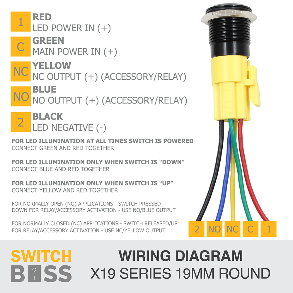 Package Contents | 1 x R19 Series Push Button Switch 1 x Pre-Wired 5 Pin Connector |