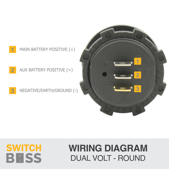Compact dual volt meter with round fit. Perfect for dual battery setups in off-road, marine, or van builds.