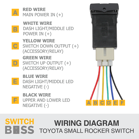 Package Contents 1 x Toyota Small compatible Rocker Switch 1 x Wiring Loom