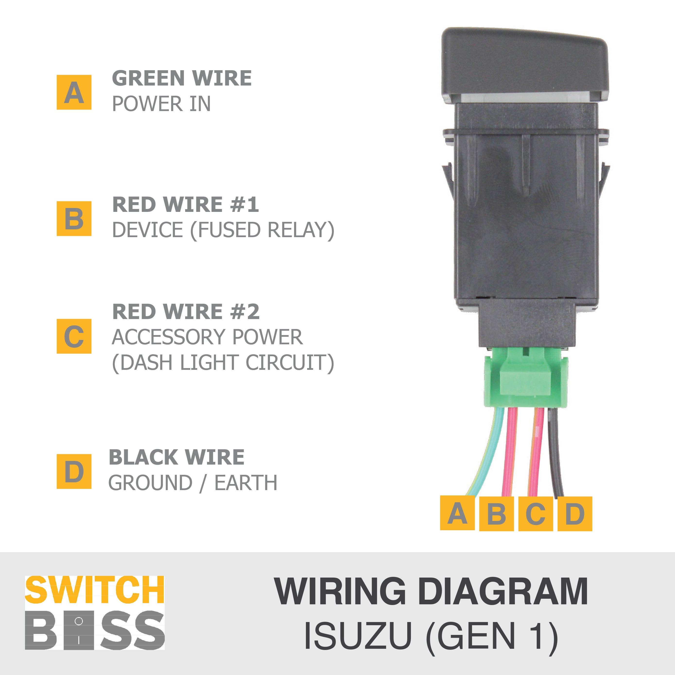 Custom switch to suit Isuzu/Holden Gen 1—designed to match your setup with personalised text and symbol. No cutting, easy install, factory fit.