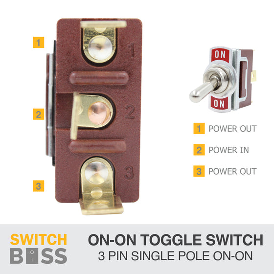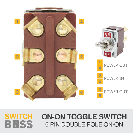 This heavy-duty On-On toggle switch is built for 12V and 24V systems, offering reliable control without an Off position — simply switch up for On or down for On. Available in both single pole (SPDT) and double pole (DPDT) configurations, it’s a versatile solution for managing two power feeds, power, or accessories with ease. Designed for straightforward installation using standard automotive terminals, it provides dependable performance in automotive, 4x4, boat, and industrial setups. Durable and built to last, this toggle switch delivers precise control and a professional finish for any electrical system upgrade.