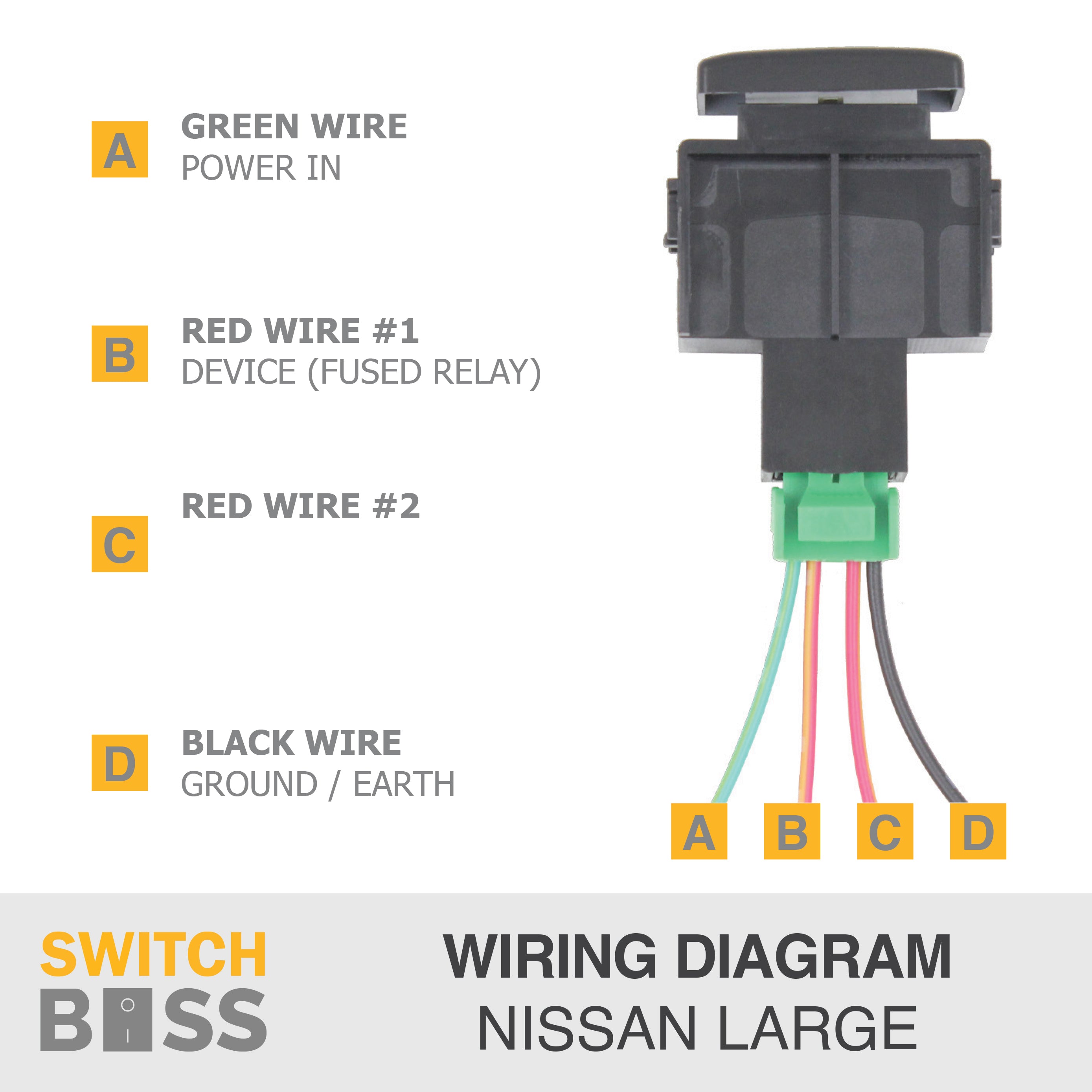 Package Contents | 1 x Amber LED Nissan Large Compatible Push Switch 1 x Wiring Loom |